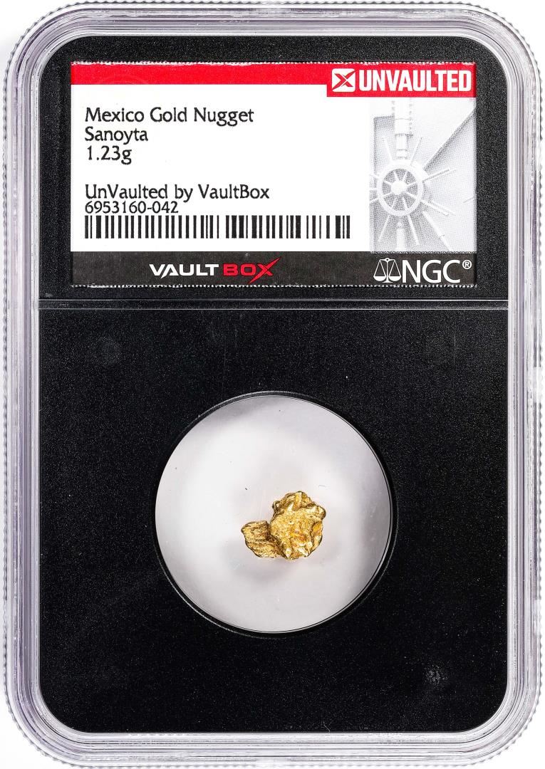 1.23 Gram Sanoyta Mexico Gold Nugget NGC Vaultbox Unvaulted