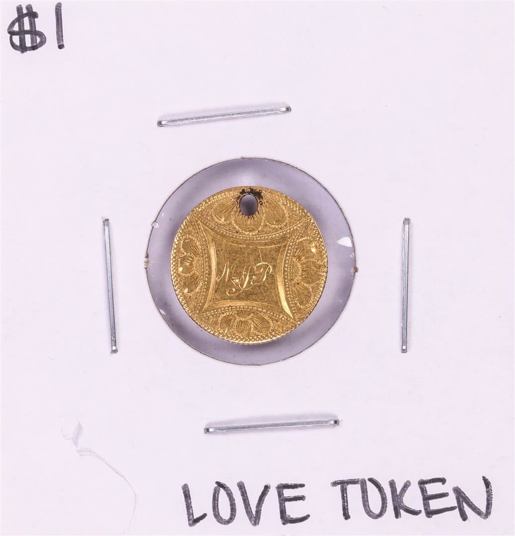 One $1 Indian Princess Head Gold Dollar Love Token Coin Holed.