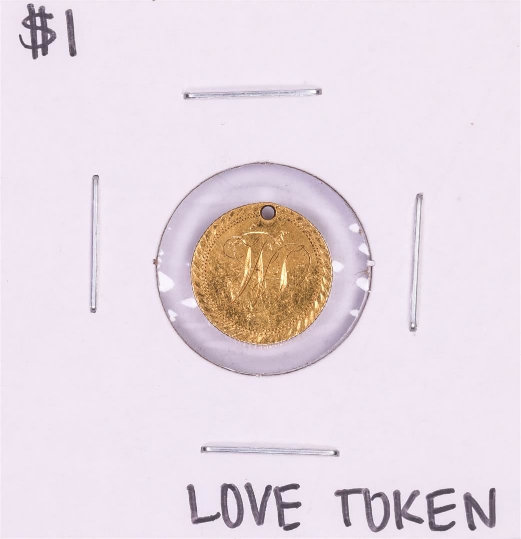 One $1 Liberty Head Gold Dollar Love Token Coin Holed.