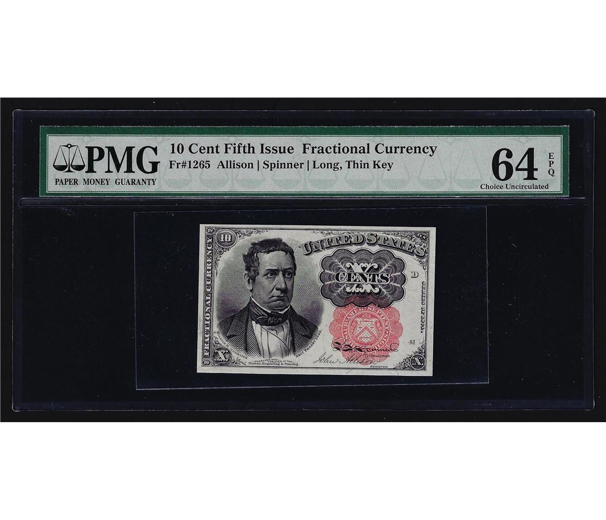 One 10 Cent Fifth Issue Fractional Currency Note PMG Choice Uncirculated 64EPQ. PMG Certified.