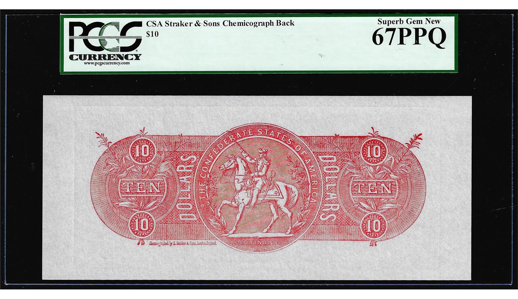 One $10 Chemicograph Back Confederate Currency Note PCGS Superb Gem New 67PPQ. PCGS Graded.