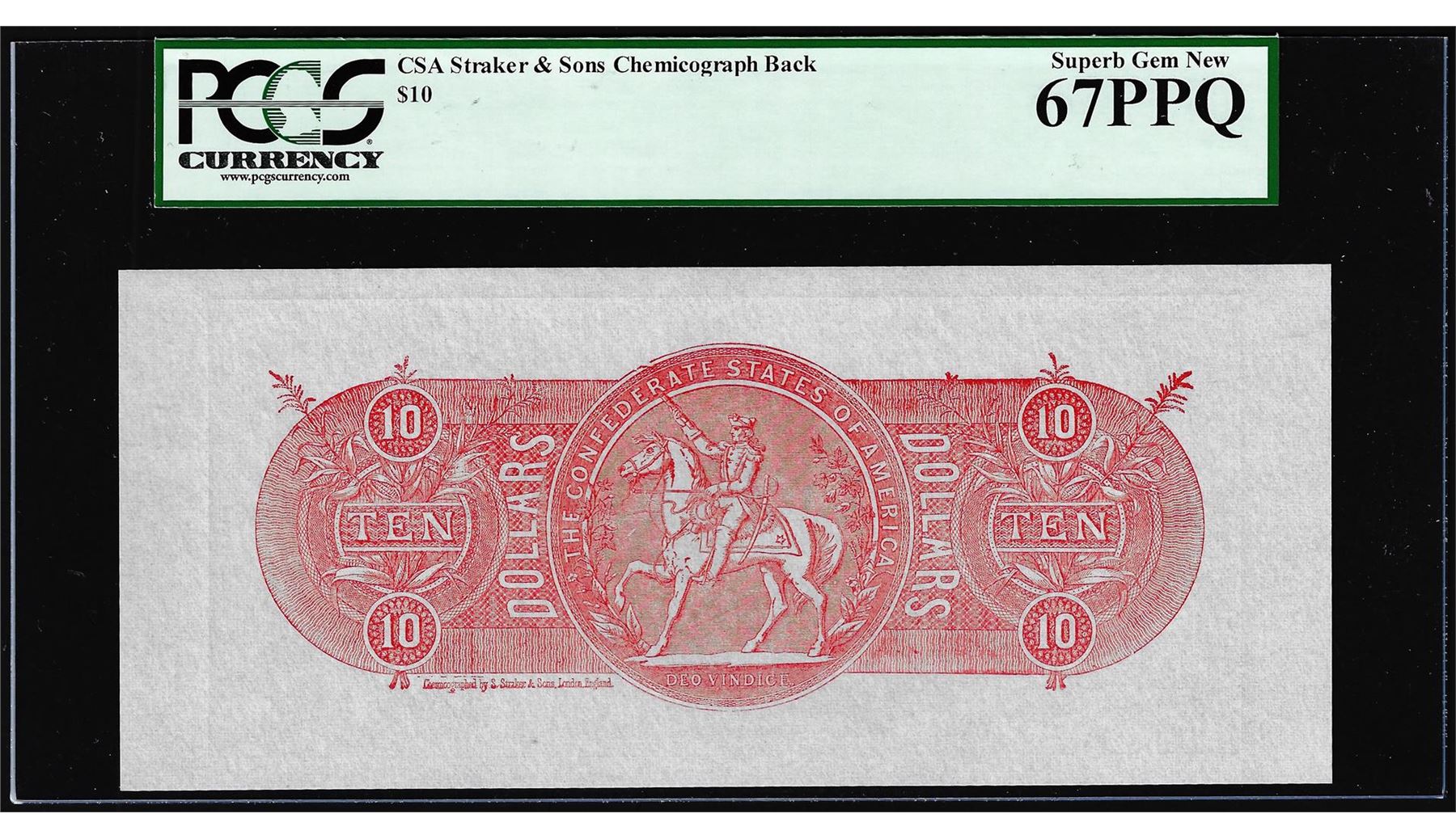 One $10 Chemicograph Back Confederate Currency Note PCGS Superb Gem New 67PPQ. PCGS Graded.