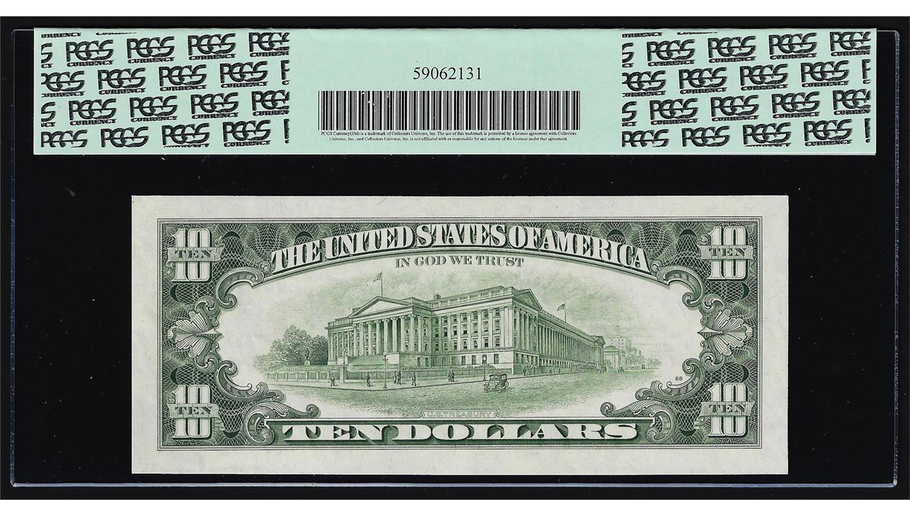One $10 Federal Reserve Note Missing Face Print ERROR PCGS Very Choice New 64PPQ. PCGS Graded.