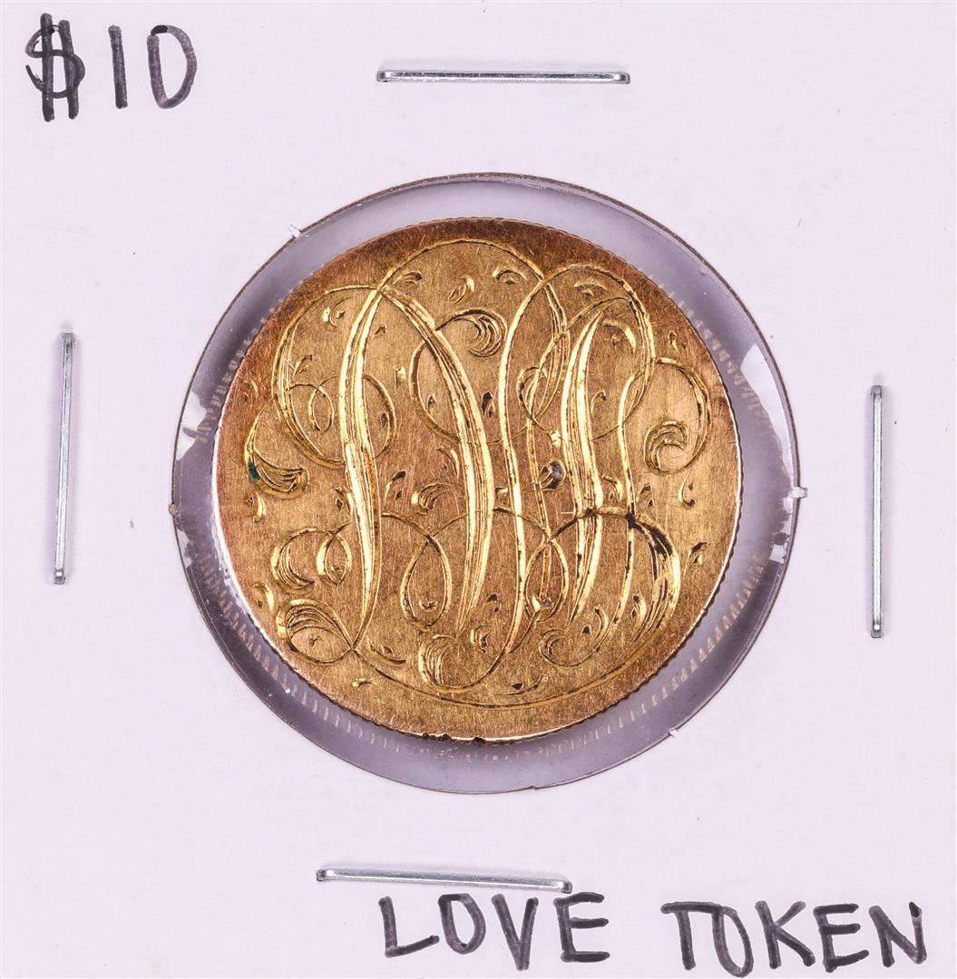 One $10 Liberty Head Eagle Gold Love Token Coin Pin.