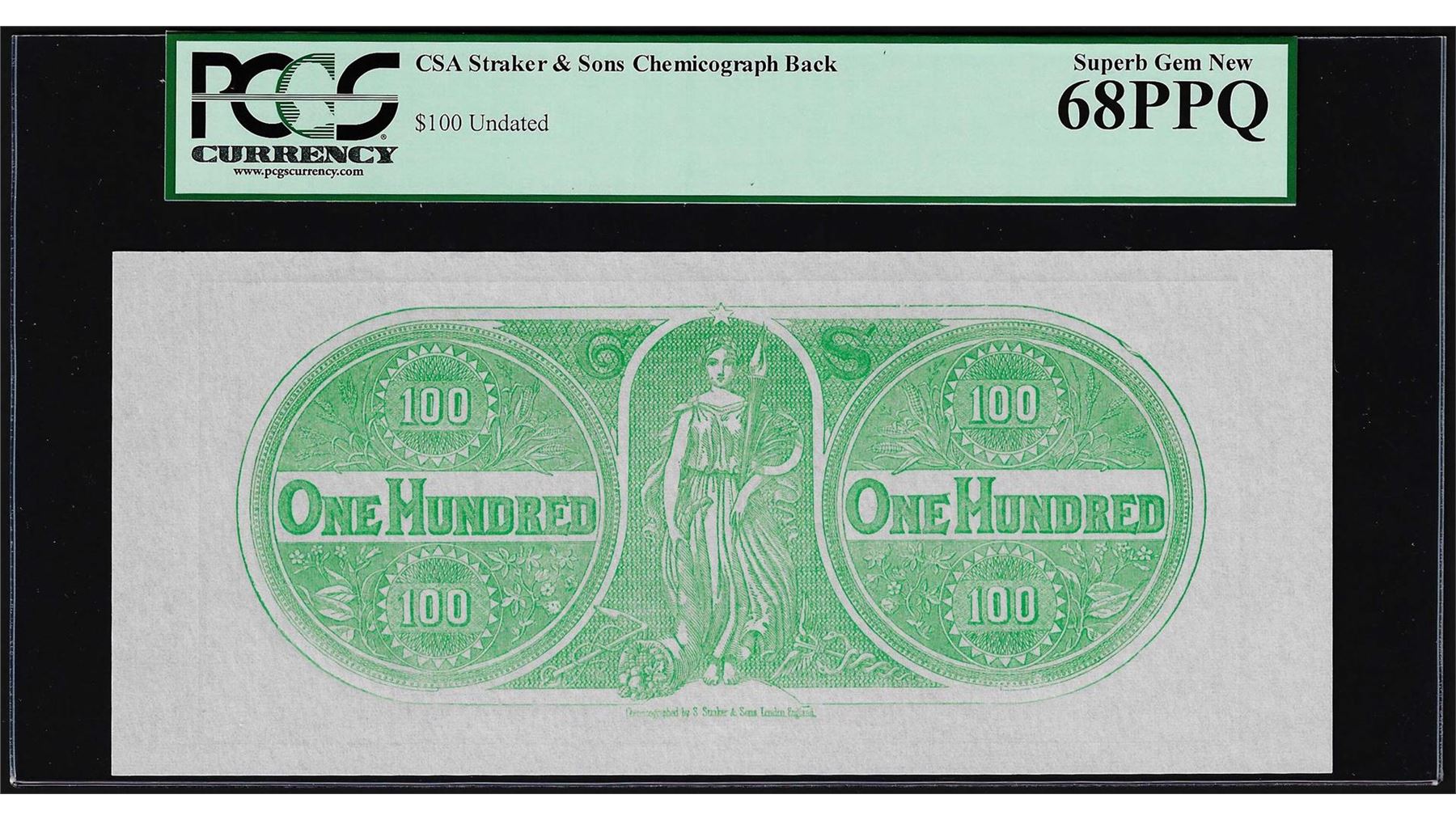 One $100 Chemicograph Back Confederate Currency Note PCGS Superb Gem New 68PPQ. PCGS Graded.