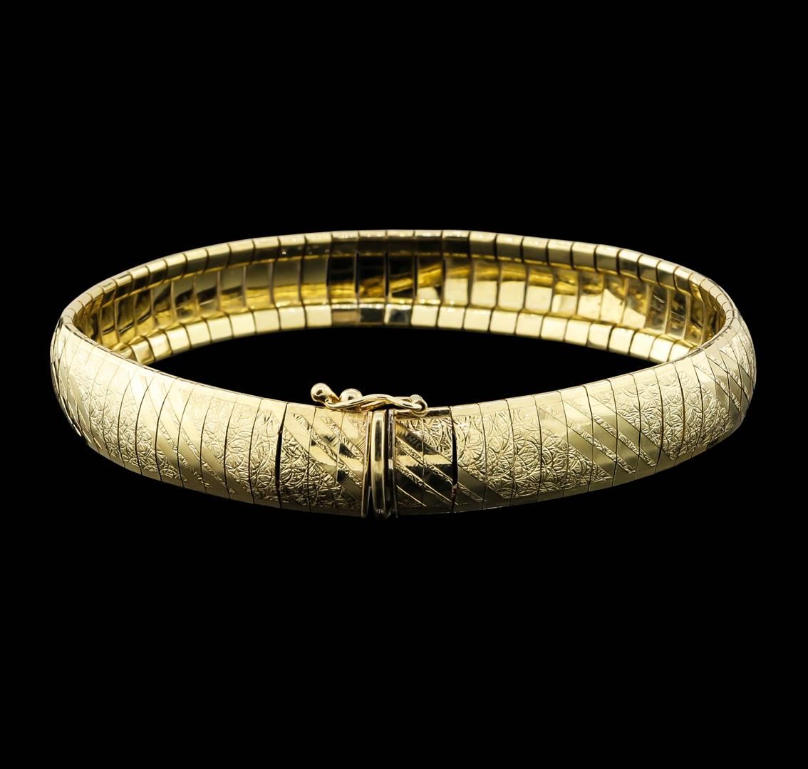 One 10K Yellow Gold Fashion Bracelet weighing approximately 15.4 grams and has a length of 7 1/8 inches.