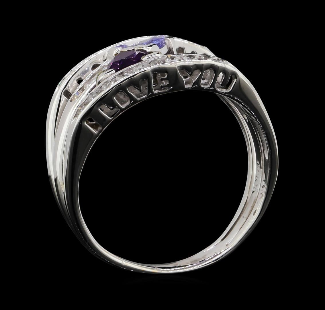 10KT White Gold 0.34ct Tanzanite, Amethyst and Diamond Ring