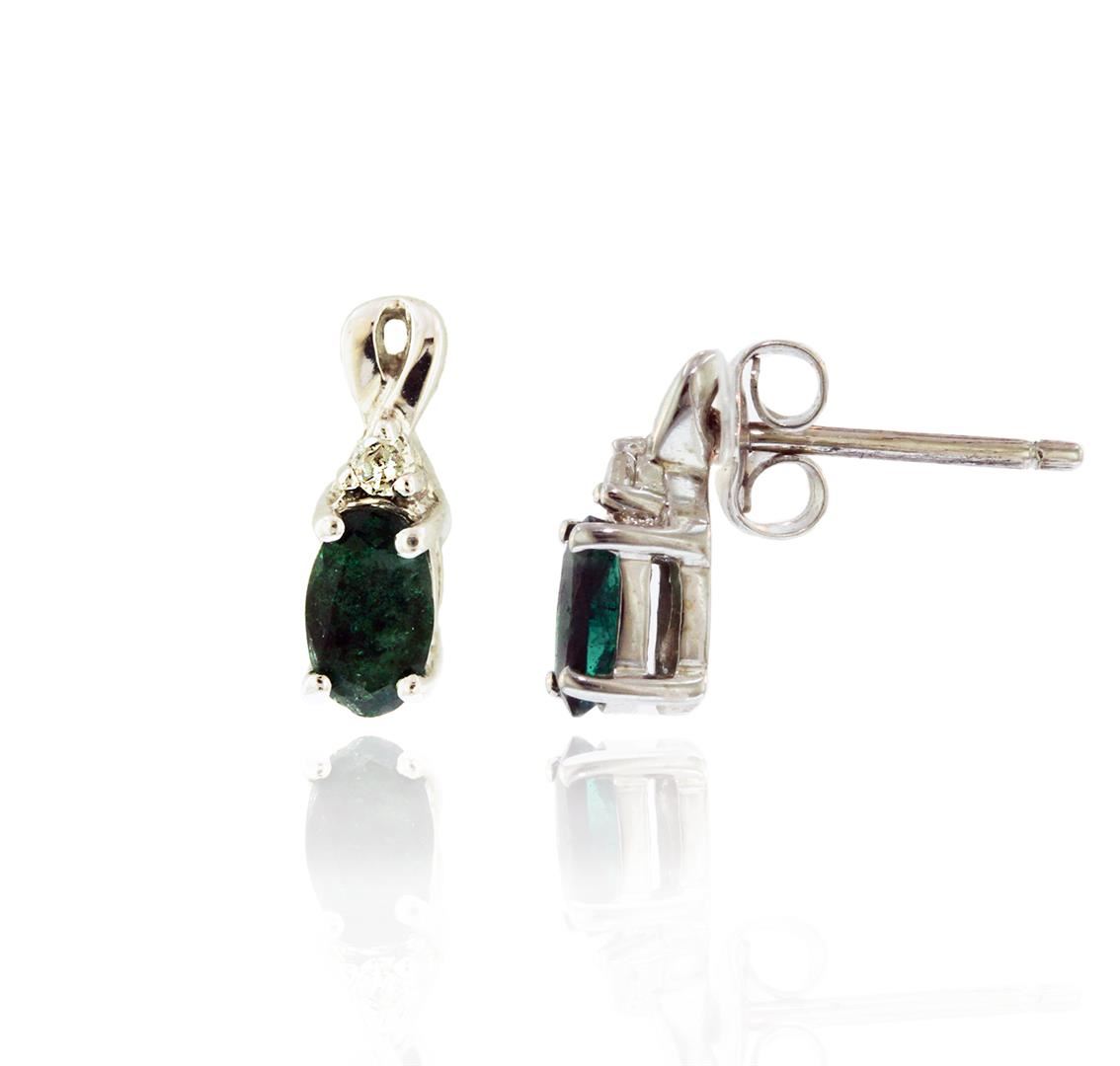 One 10KT White Gold 0.3ct Emerald and Diamond Earrings. Total Weight of item is 10KT White Gold is 0.9 grams.