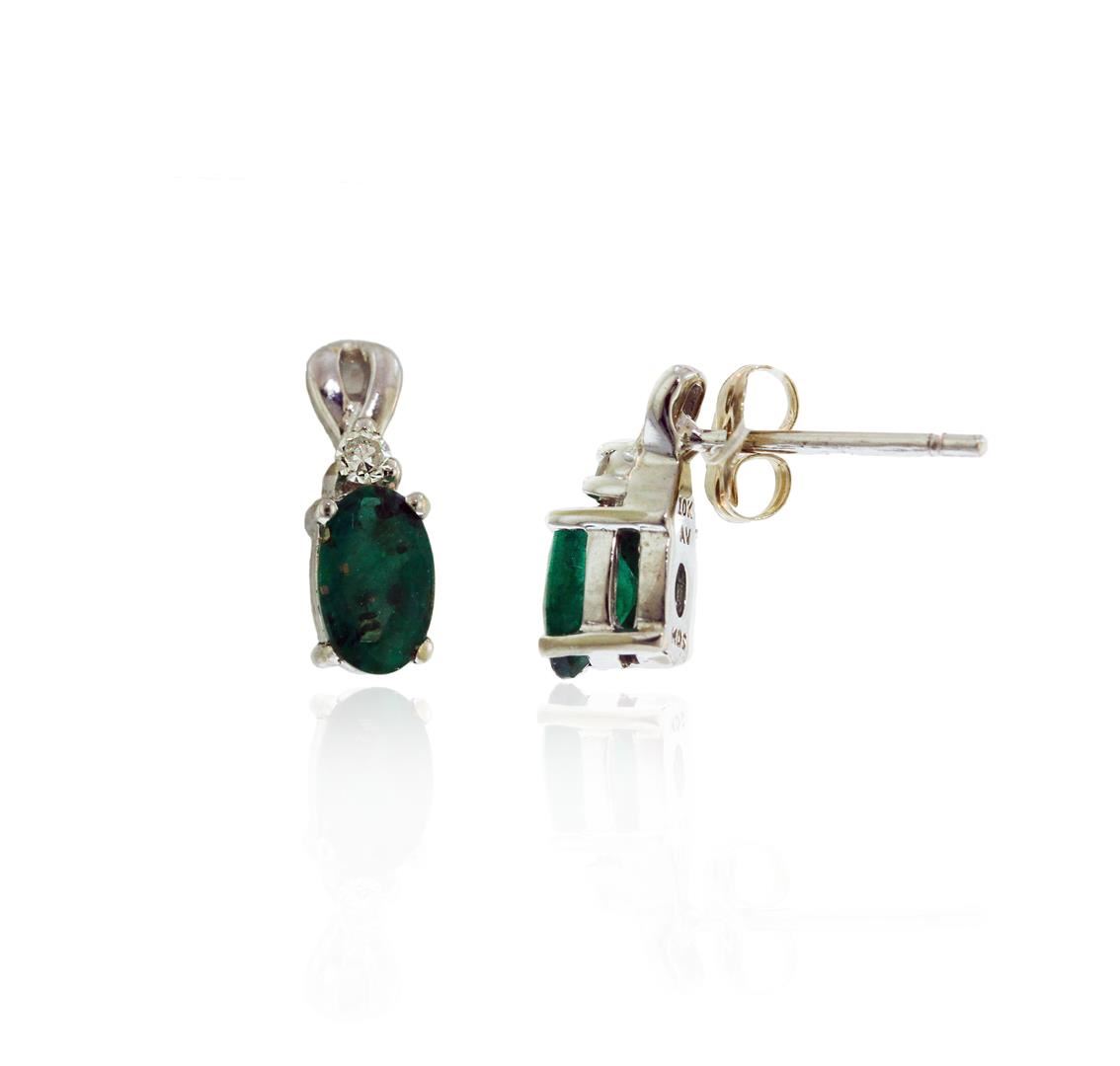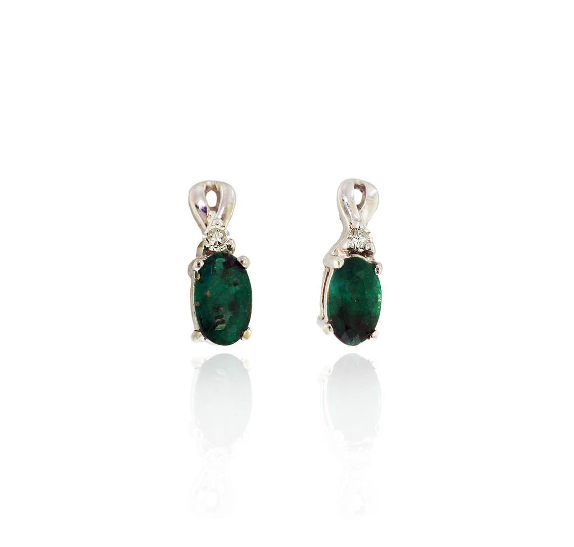 One 10KT White Gold 0.3ct Emerald and Diamond Earrings. Total Weight of item is 10KT White Gold is 0.9 grams.