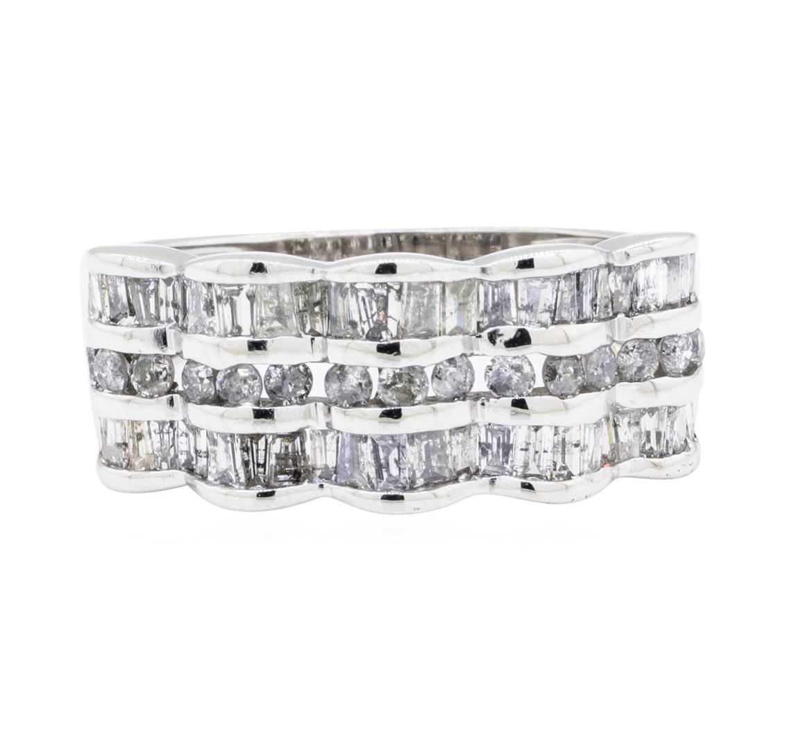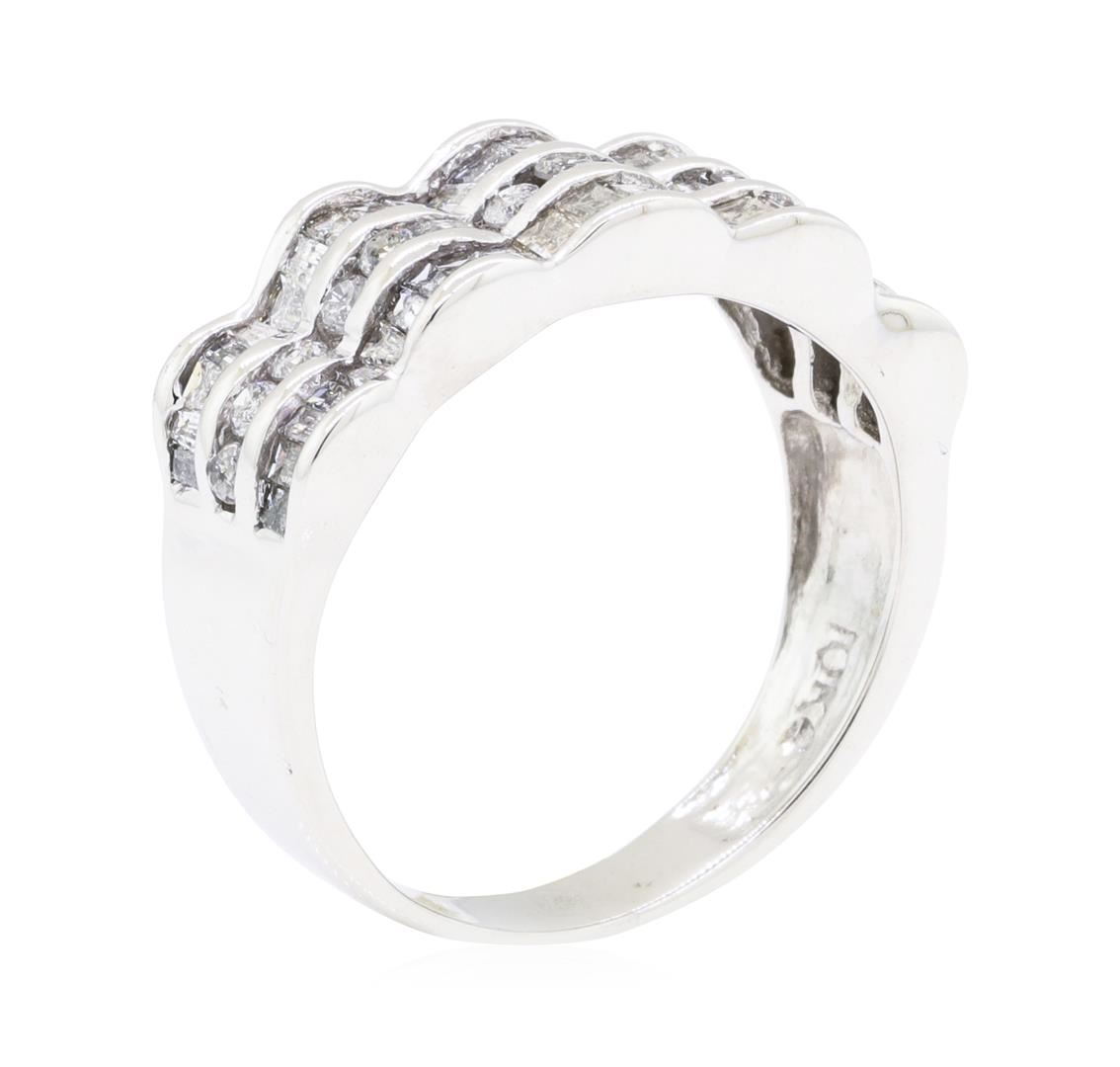 One ring featuring: 10KT white gold weighing 3.5 grams containing diamonds weighing 0.50ctw. The ring is a size 6.5.