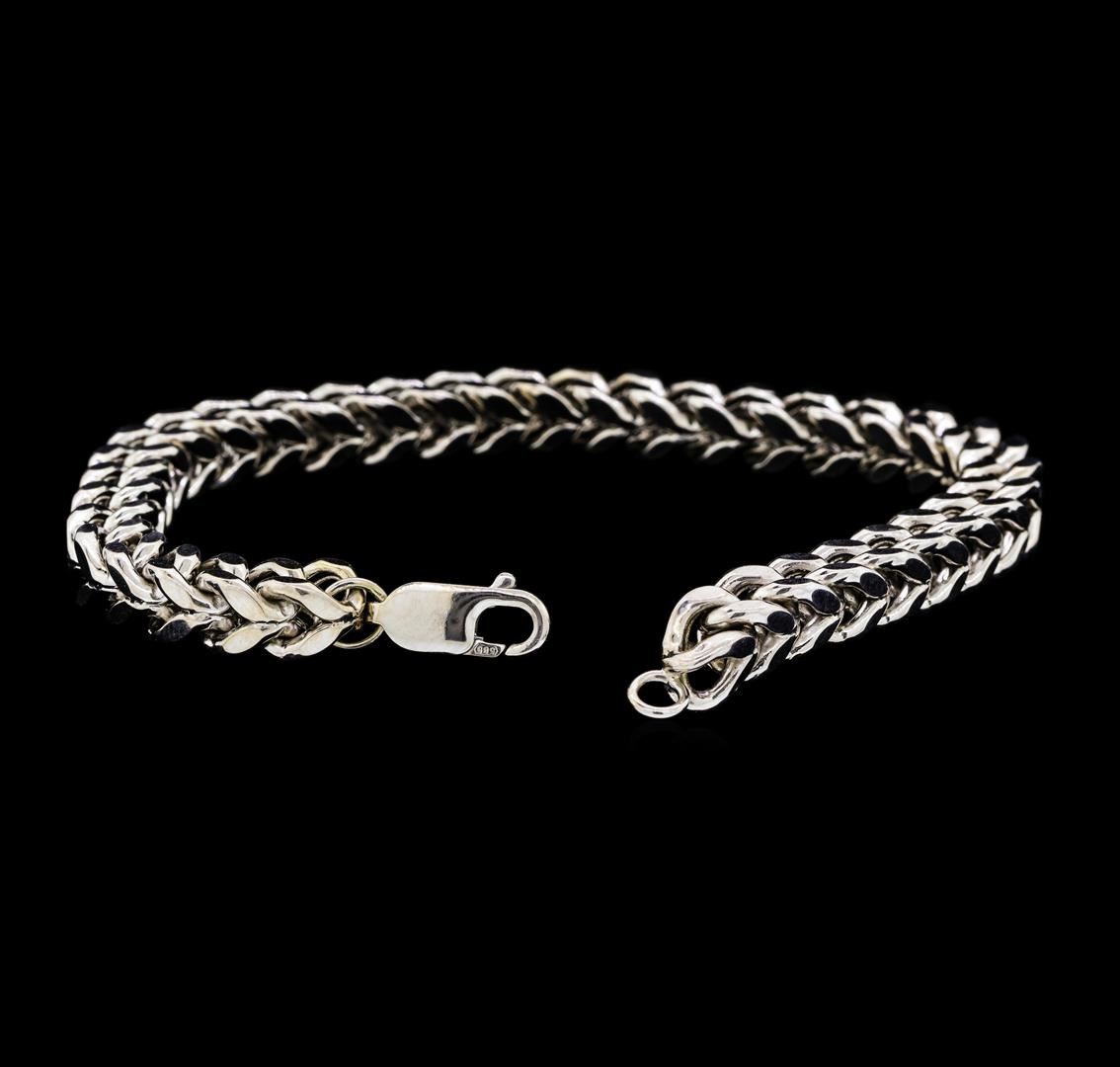 One Ladies bracelet with a box wheat link chain measuring approximately seven inches in length featuring: 10KT white gold with a 14KT white gold lobster claw clasp weighing 18.4 grams.