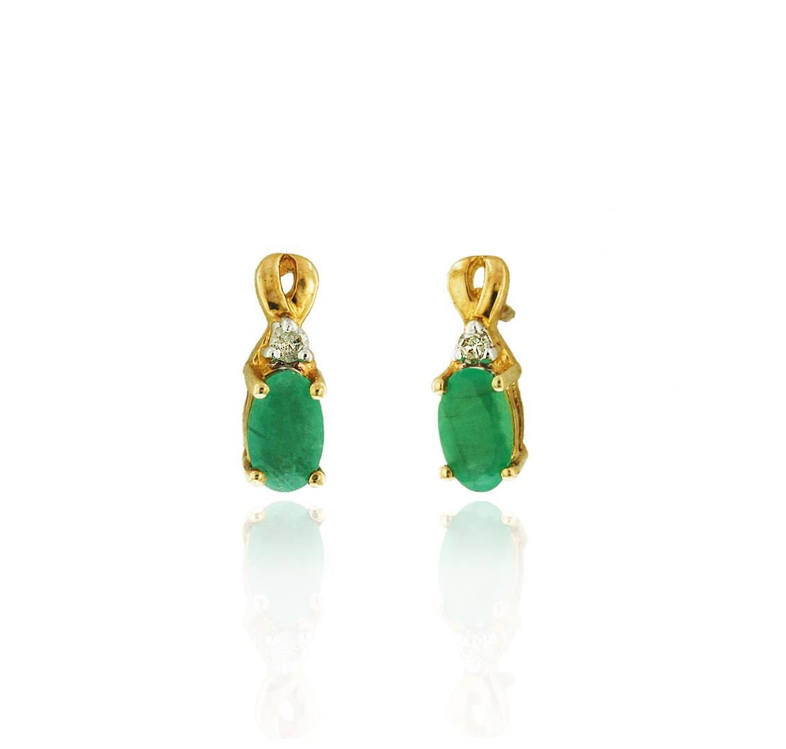 One 10KT Yellow Gold 0.2ct Emerald and Diamond Earrings. Total Weight of item is 10KT Yellow Gold is 0.6 grams.