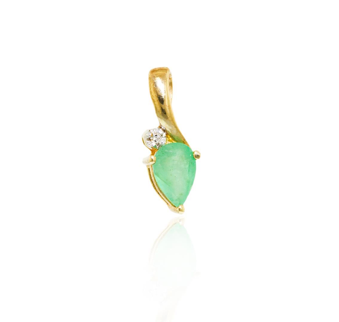 One 10KT Yellow Gold 0.35ct Emerald and Diamond Pendant. Total Weight of item is 10KT Yellow Gold is 0.5 grams.