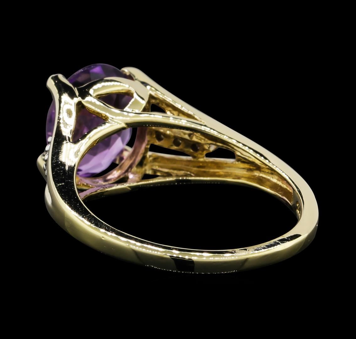 One Ladies ring featuring: 10KT yellow gold weighing 3.4 grams containing one amethyst weighing 2.00ct and diamonds weighing 0.10ctw.