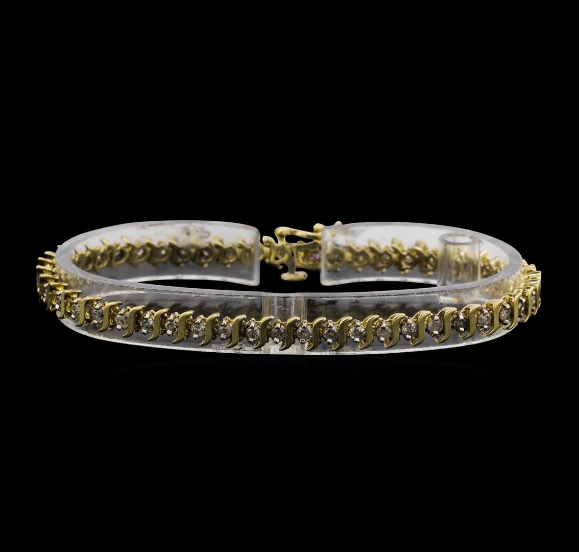 One Ladies tennis bracelet featuring: 10KT yellow gold weighing 6.7 grams containing diamonds weighing 2.00ctw.