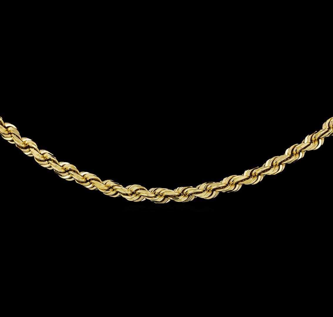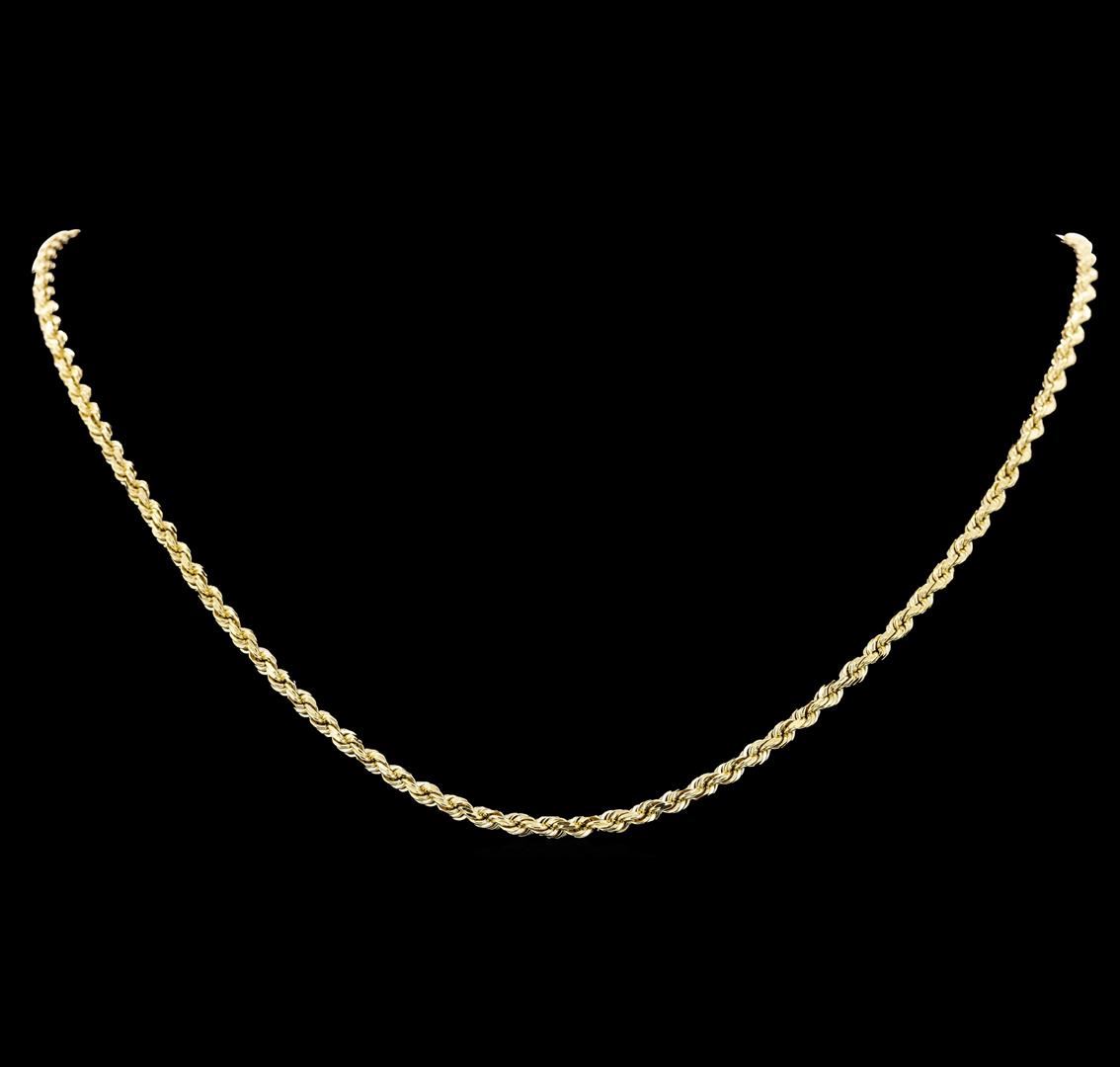 One men's diamond cut rope chain measuring three millimeters wide and twenty inches long featuring: 10KT yellow gold with a 14KT yellow gold clasp weighing a combined 20.2 grams.