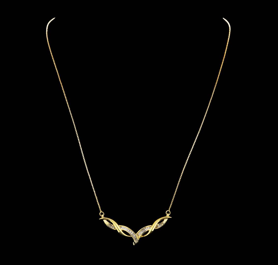 One Ladies necklace featuring: 14KT yellow gold chain weighing 3.1 grams and a 10KT yellow gold centerpiece weighing 4.6 grams containing diamonds weighing 0.50ctw.