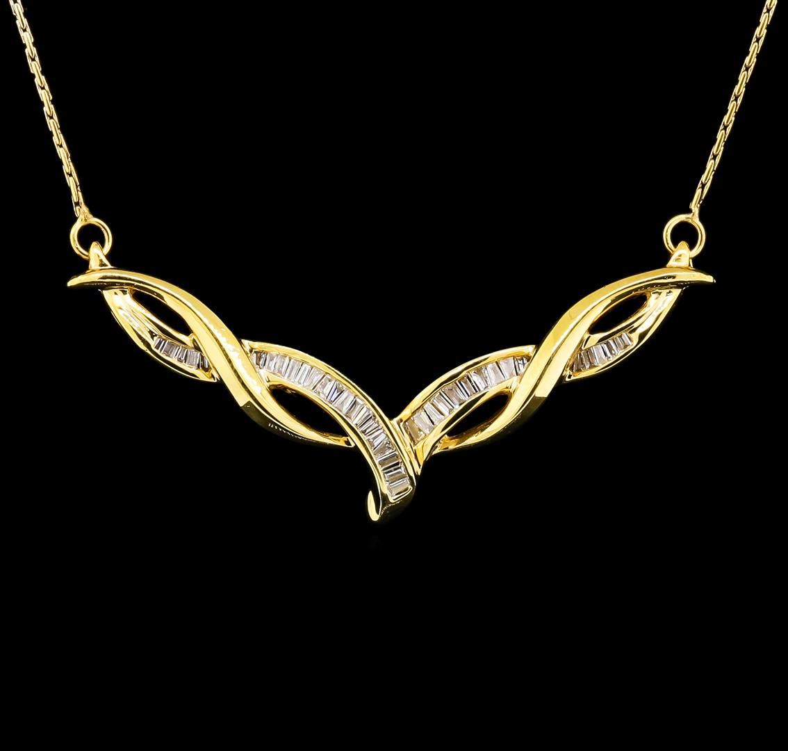 One Ladies necklace featuring: 14KT yellow gold chain weighing 3.1 grams and a 10KT yellow gold centerpiece weighing 4.6 grams containing diamonds weighing 0.50ctw.