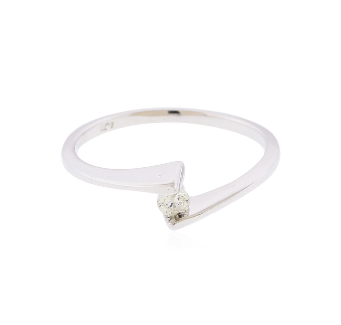 One 10k White Gold and .10ct Diamond Ring weighing 1.5 grams. The inside of the ring is stamped with the markings of '10KSR' and 'AJR'.