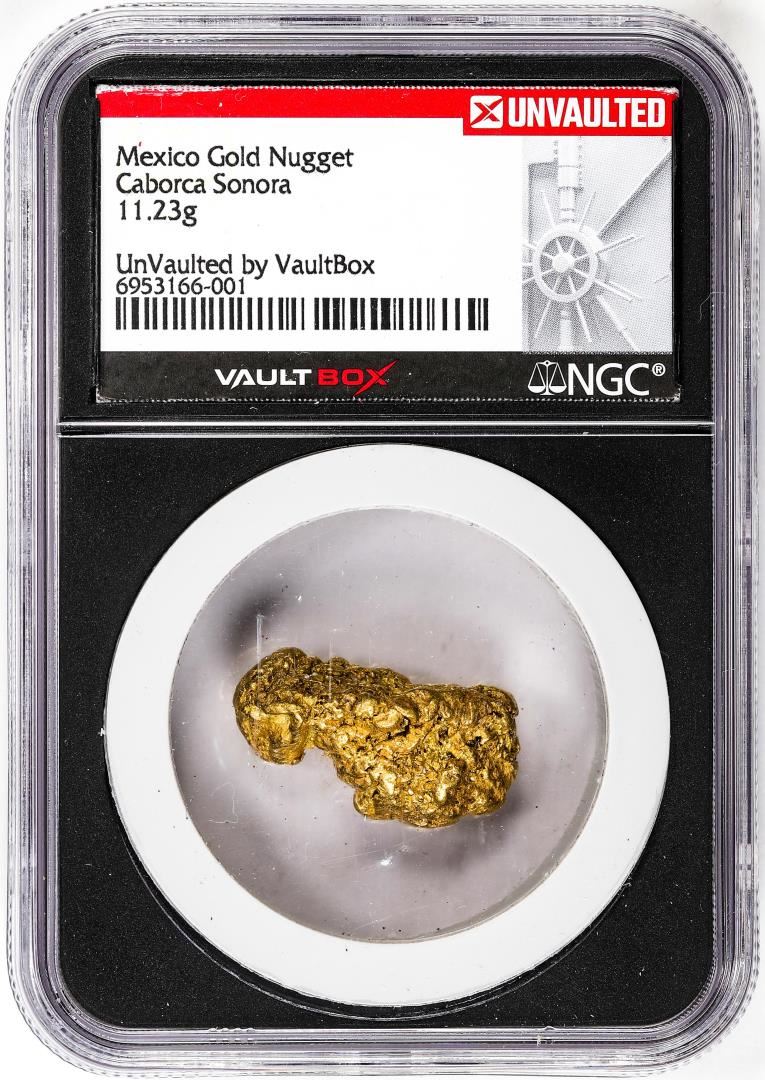 One 11.23 Gram Caborca Sonora Mexico Gold Nugget NGC Vaultbox Unvaulted. NGC Certified.