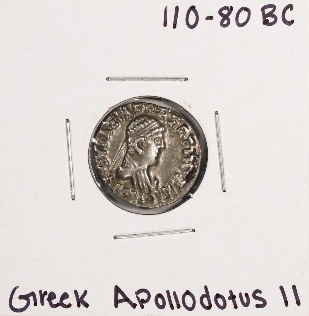 One 110-80 BC Bactria, Indo-Greek Apollodotus II AR Drachm Ancient Silver Coin.