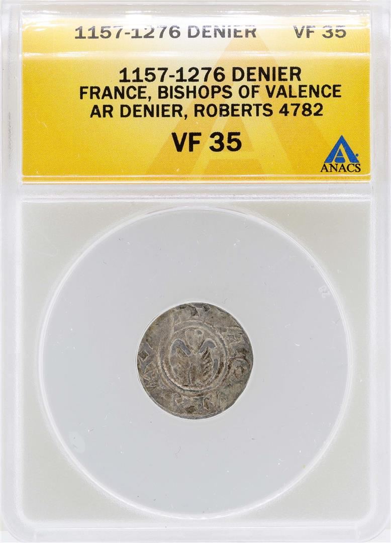 1157-1276 Denier France Bishops of Valence Coin ANACS VF35