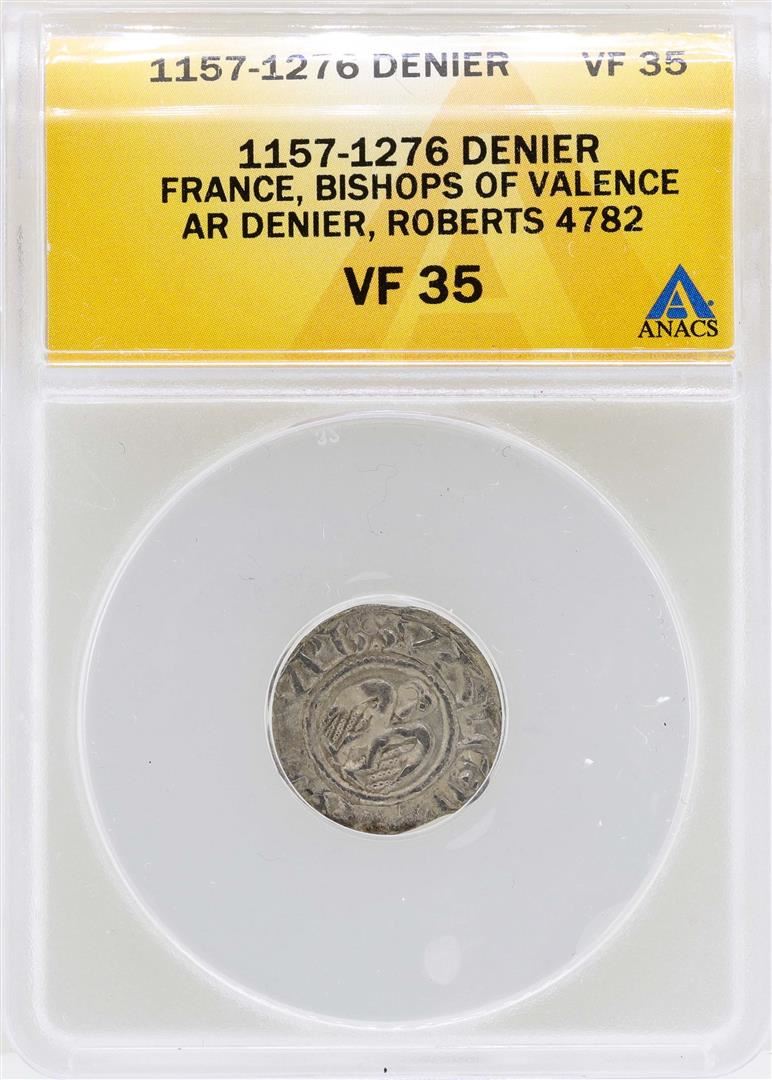 1157-1276 Denier France Bishops of Valence Coin ANACS VF35
