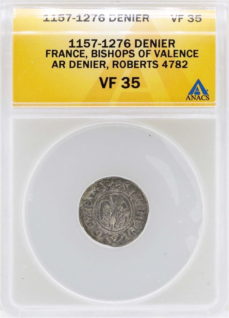 One 1157-1276 Denier France Bishops of Valence Coin ANACS VF35. ANACS Certified.