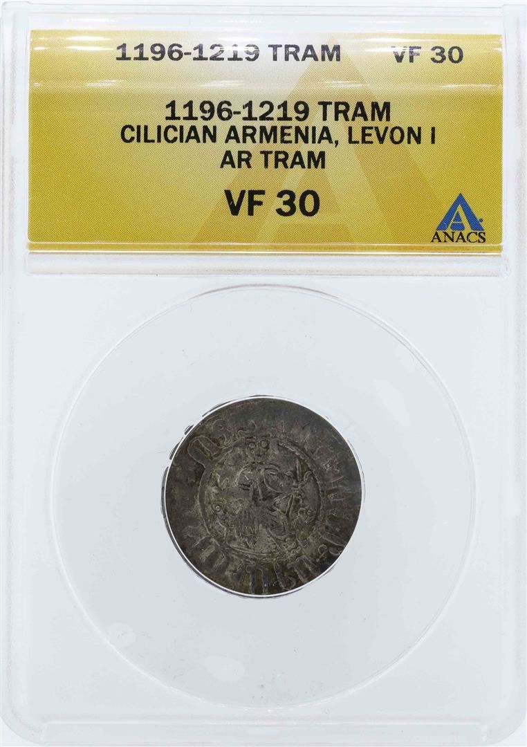 One 1196-1219 Cilician Armenia Levoon I AR Tram Coin ANACS VF30. ANACS Certified.
