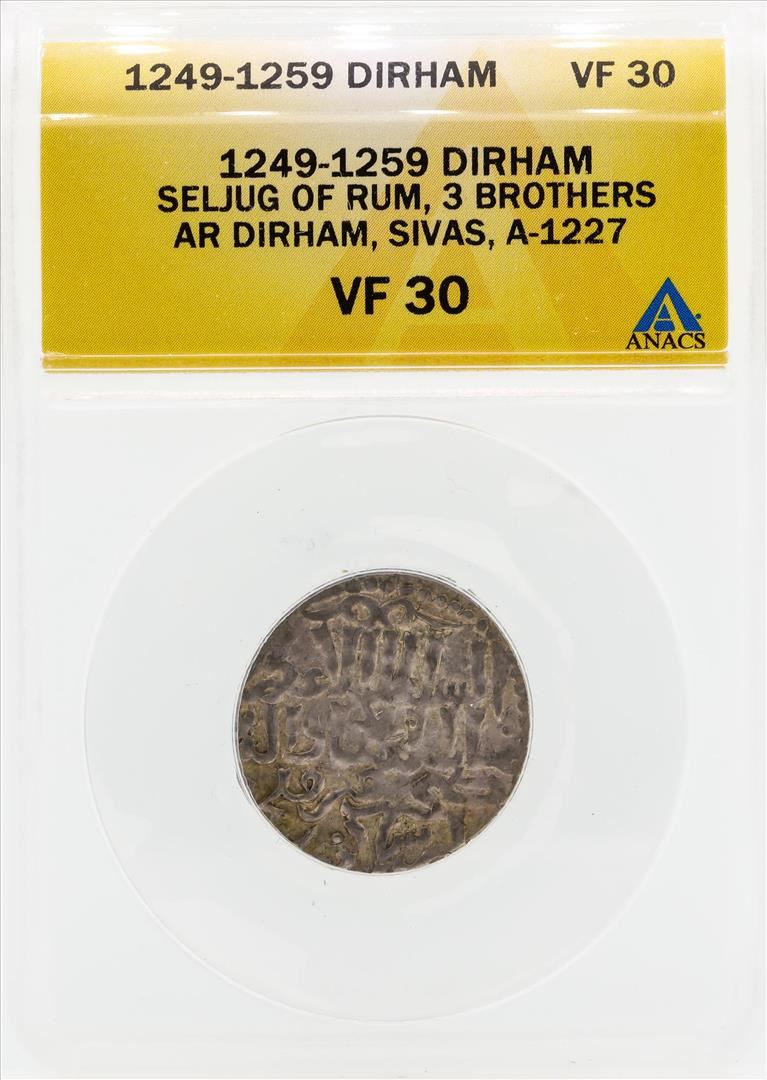 1249-1259 Dirham Seljug of Rum 3 Brothers Coin ANACS VF30