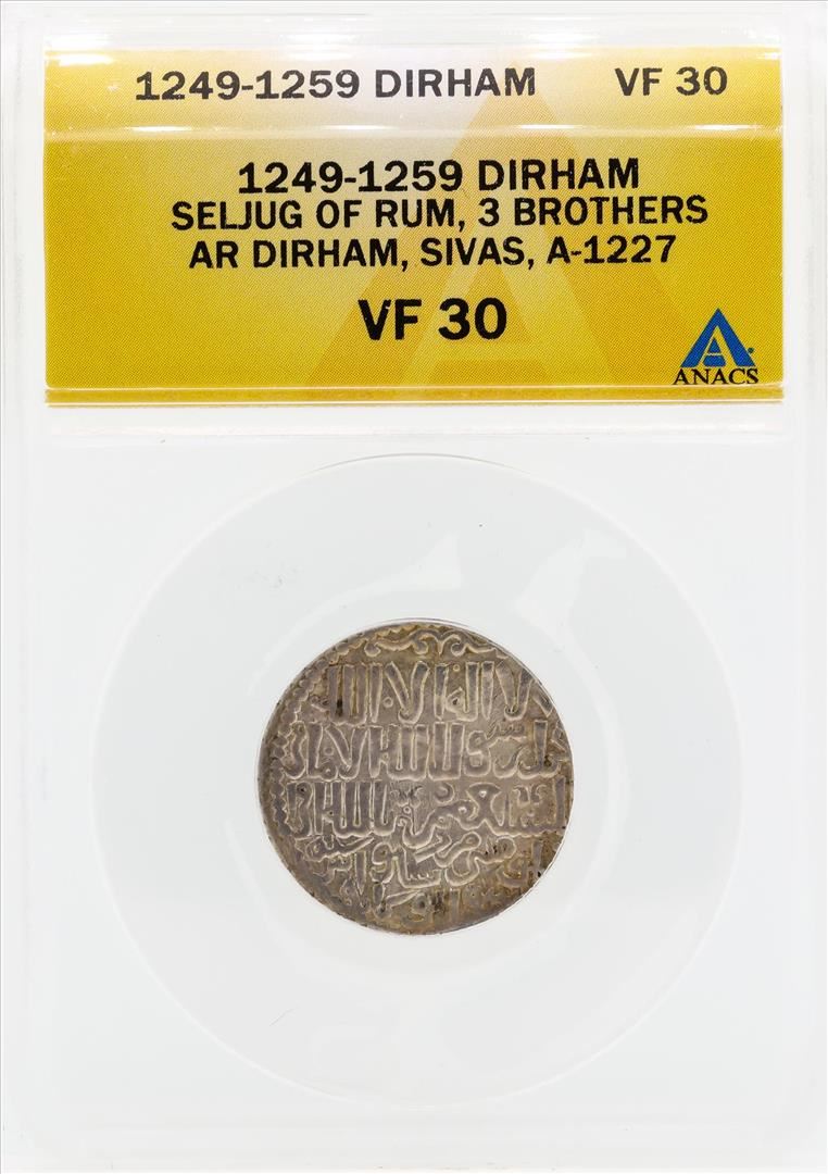 1249-1259 Dirham Seljug of Rum 3 Brothers Coin ANACS VF30