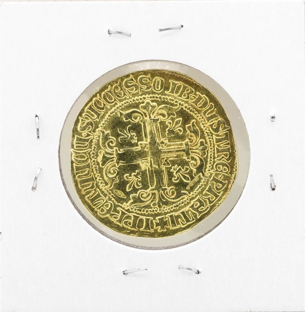 One 1309-43 Restrike 18K Gold Naples & Sicily Gigliato of Robert Coin with a total weight of 6 grams.