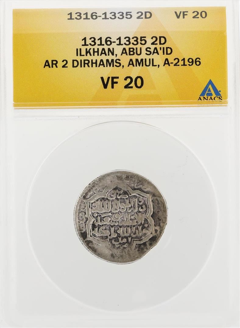 1316-1335 2D Ilkhan ABU SA ID AR 2 Dirhams Amul A2196 Coin ANACS VF20