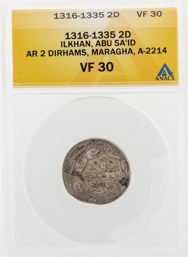 1316-1335 2D Ilkhan ABU SA ID AR 2 Dirhams Maragha A2214 Coin ANACS VF30