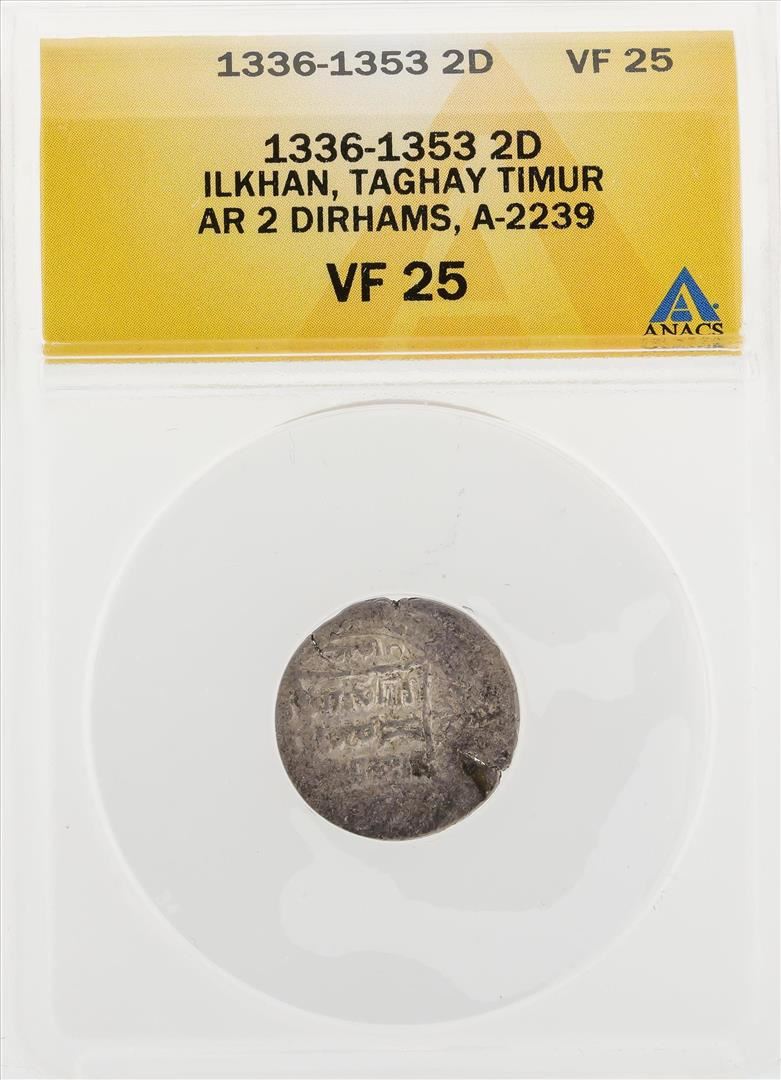 1336-1353 2D Ilkhan Taghay Timur AR 2 Dirhams A-2239 Coin ANACS VF25