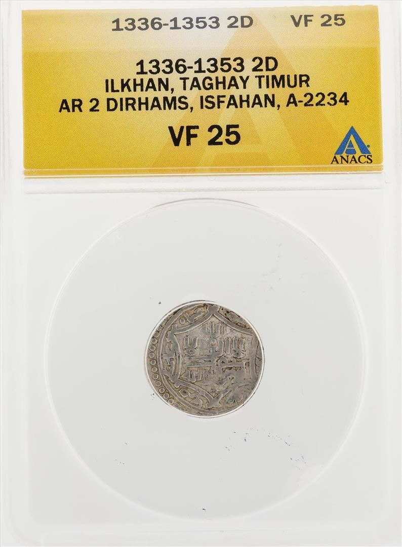 1336-1353 2D Ilkhan Taghay Timur AR 2 Dirhams Isfahan A2234 Coin ANACS VF25