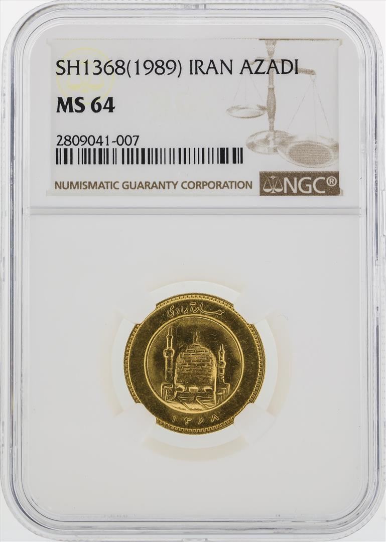 One 1368(1989) Iran Azadi Gold Coin NGC MS64. NGC Certified.