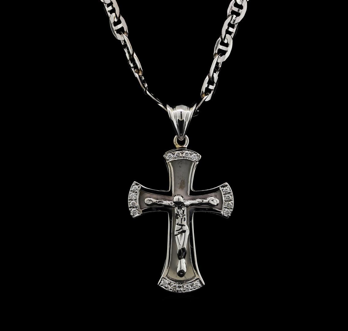 14 and 18KT White Gold 0.32ctw Diamond Cross Pendant with Chain