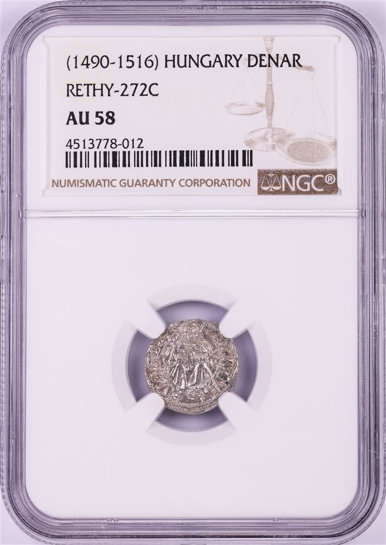 1490-1516 Rethy-272C Hungary Denar 'Madonna and Child' Coin NGC AU58