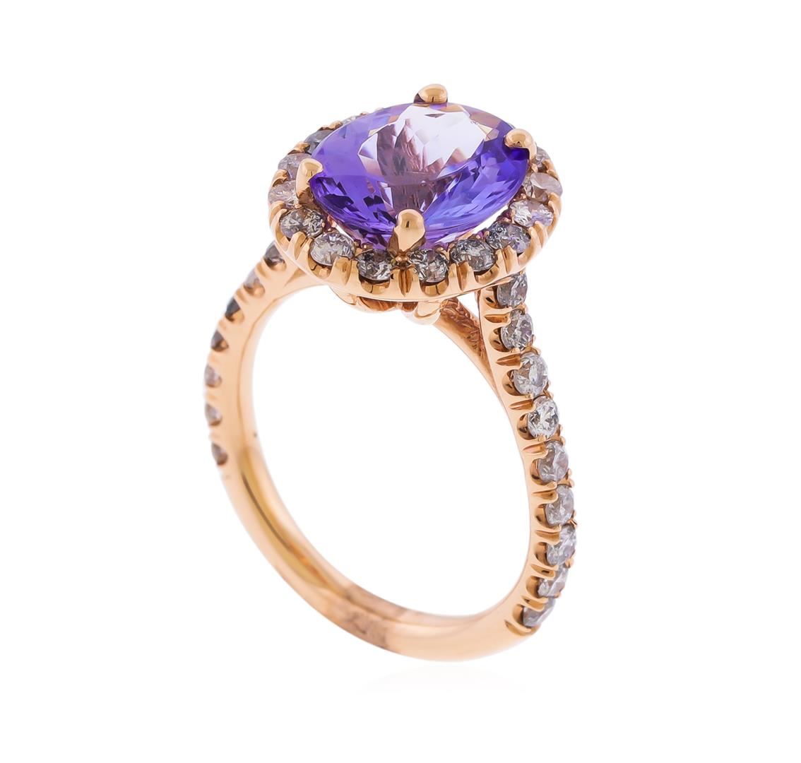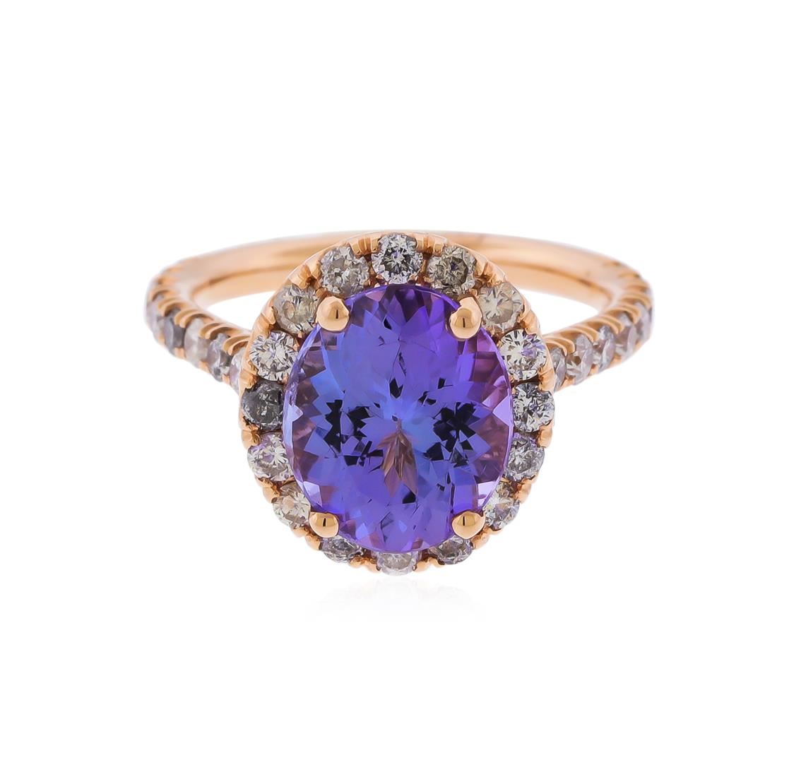 14K Rose Gold 4.36ct Tanzanite and Diamond Ring. This ring contains (1) 4.36ct Tanzanite and approximately 1.07ctws of Round Brilliant Cut Diamonds. The total weight of the ring is 4.6 grams.
