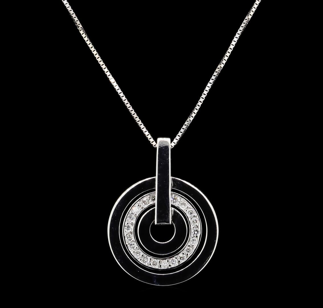 One 14K White Gold 0.30ctw Diamond Pendant with Chain. 22 diamonds with a total weight of 0.30cts. Total weight of pedant with chain is 6.5 grams.