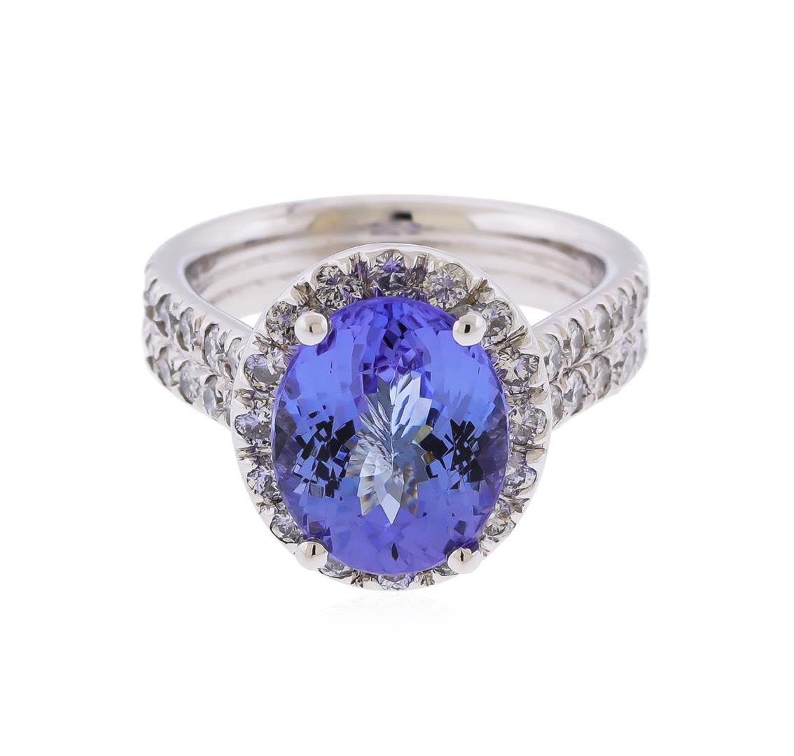 14K White Gold 3.90ct Tanzanite and Diamond Ring. This ring contains (1) 3.90ct Tanzanite and approximately 1.27ctws of Round Brilliant Cut Diamonds. The total weight of the ring is 7.0 grams.