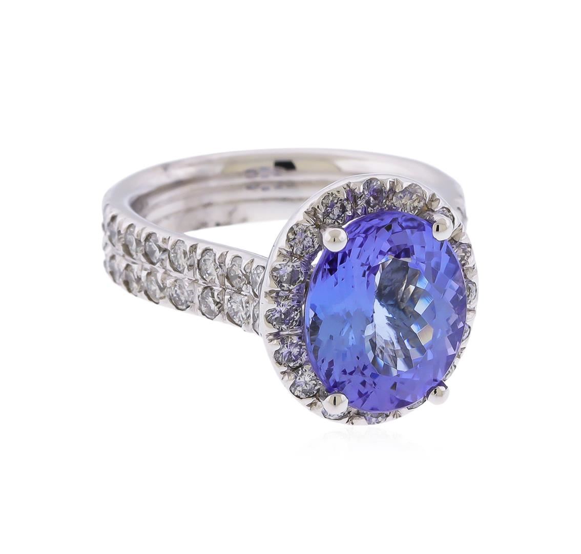 14K White Gold 3.90ct Tanzanite and Diamond Ring. This ring contains (1) 3.90ct Tanzanite and approximately 1.27ctws of Round Brilliant Cut Diamonds. The total weight of the ring is 7.0 grams.