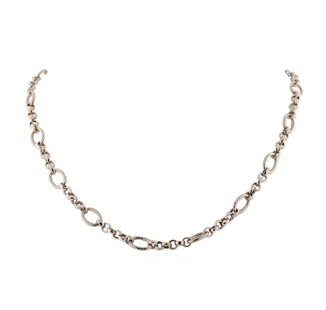 One 14k White Gold matching necklace and bracelet set weighing a total of 37.8 grams.