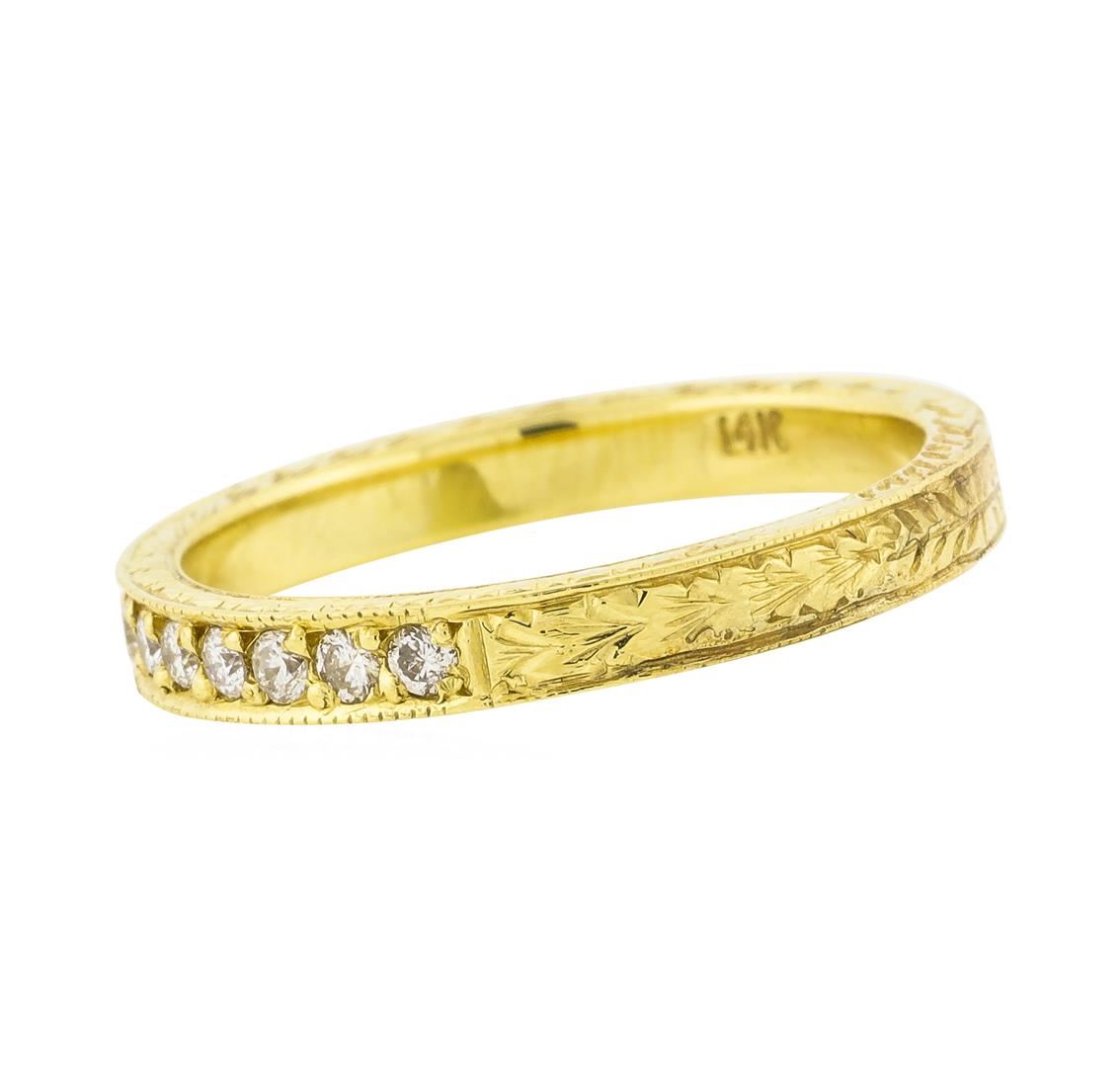 One 14K Yellow gold 0.18ctw Brilliant Round Diamond Ring. The total weight of the ring is 2.7 grams and is stamped "14K".
