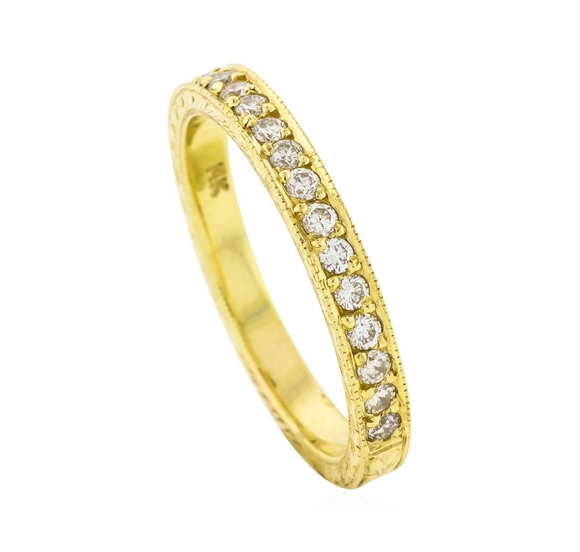 One 14K Yellow gold 0.18ctw Brilliant Round Diamond Ring. The total weight of the ring is 2.7 grams and is stamped "14K".