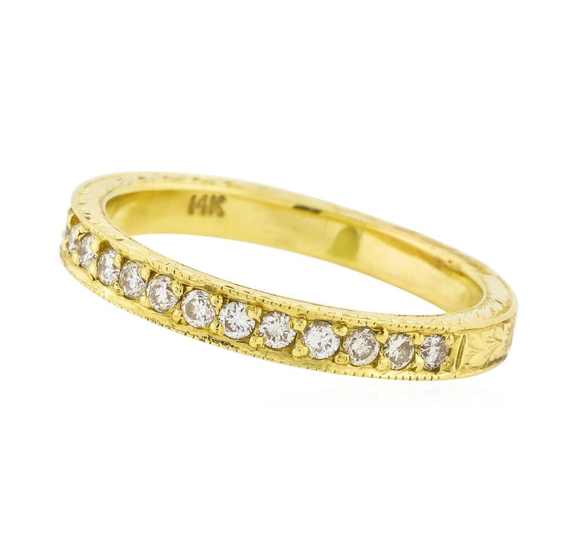 One 14K Yellow gold 0.18ctw Brilliant Round Diamond Ring. The total weight of the ring is 2.7 grams and is stamped "14K".
