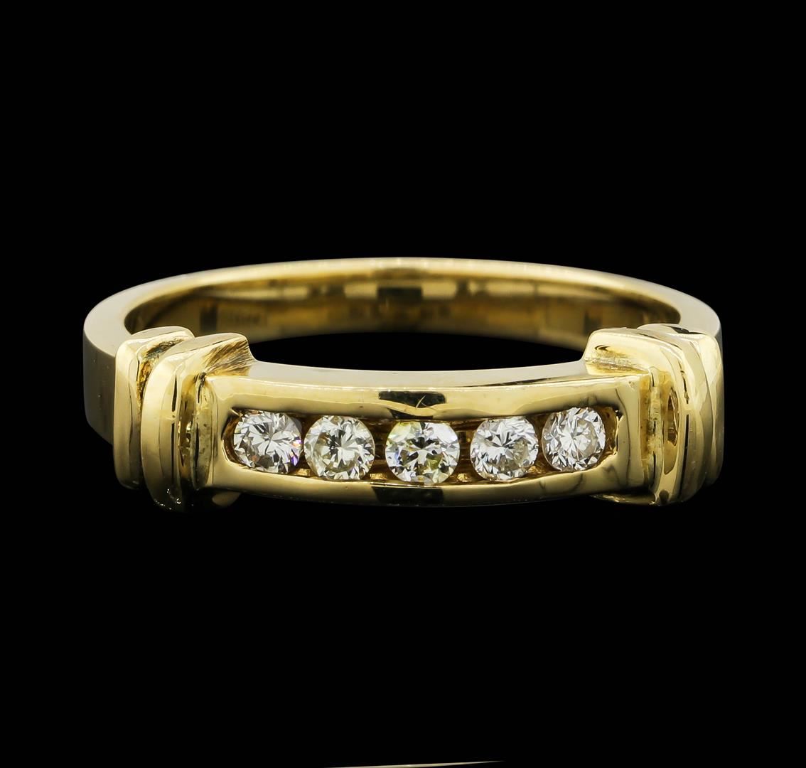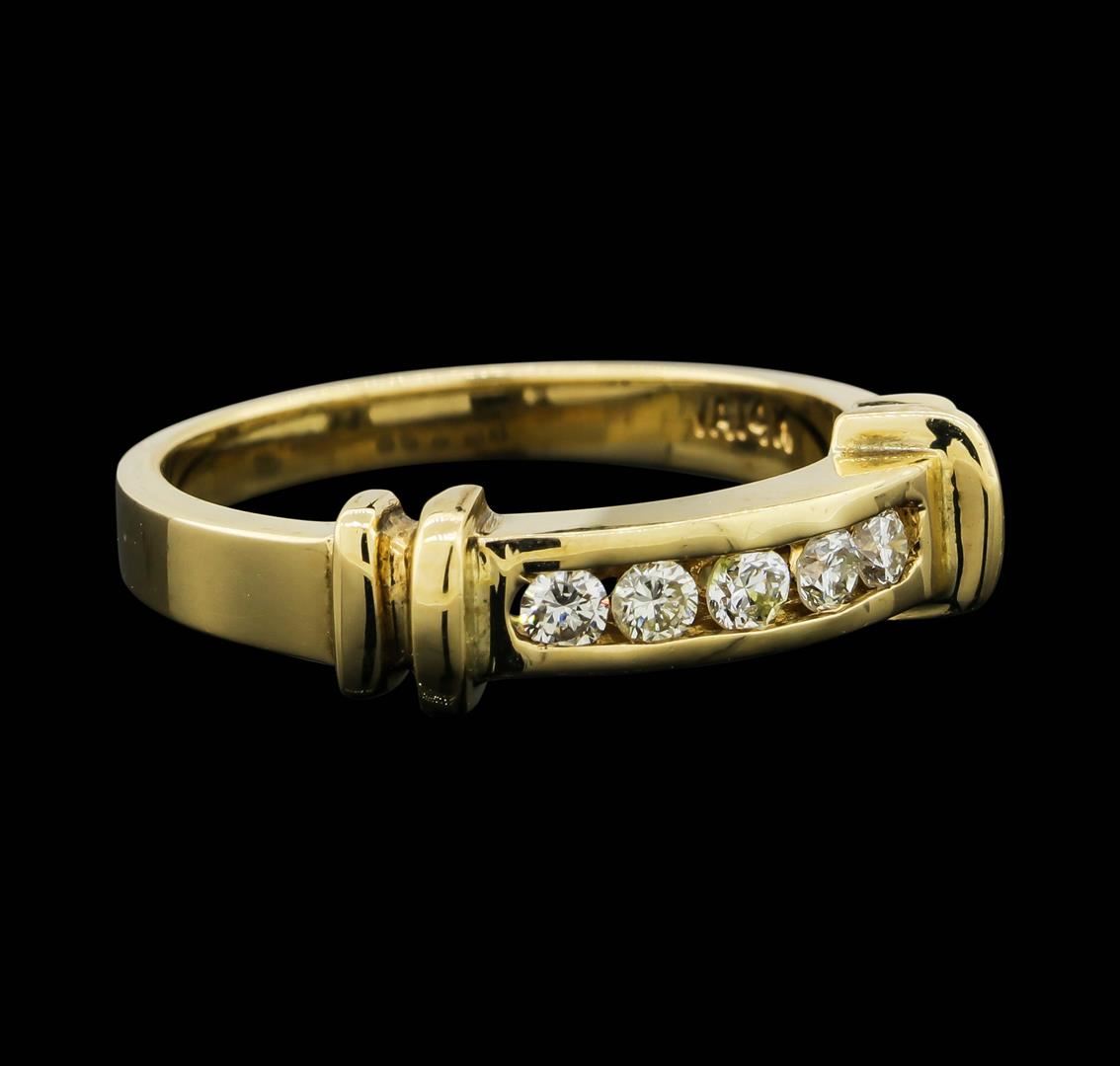 One 14K Yellow Gold 0.25ctw Diamond Ring weighing approximately 4.1 grams. The inside of the band is stamped with the marking "VA14K". 5 round cut brilliant diamonds with a total weight of 0.25cts.