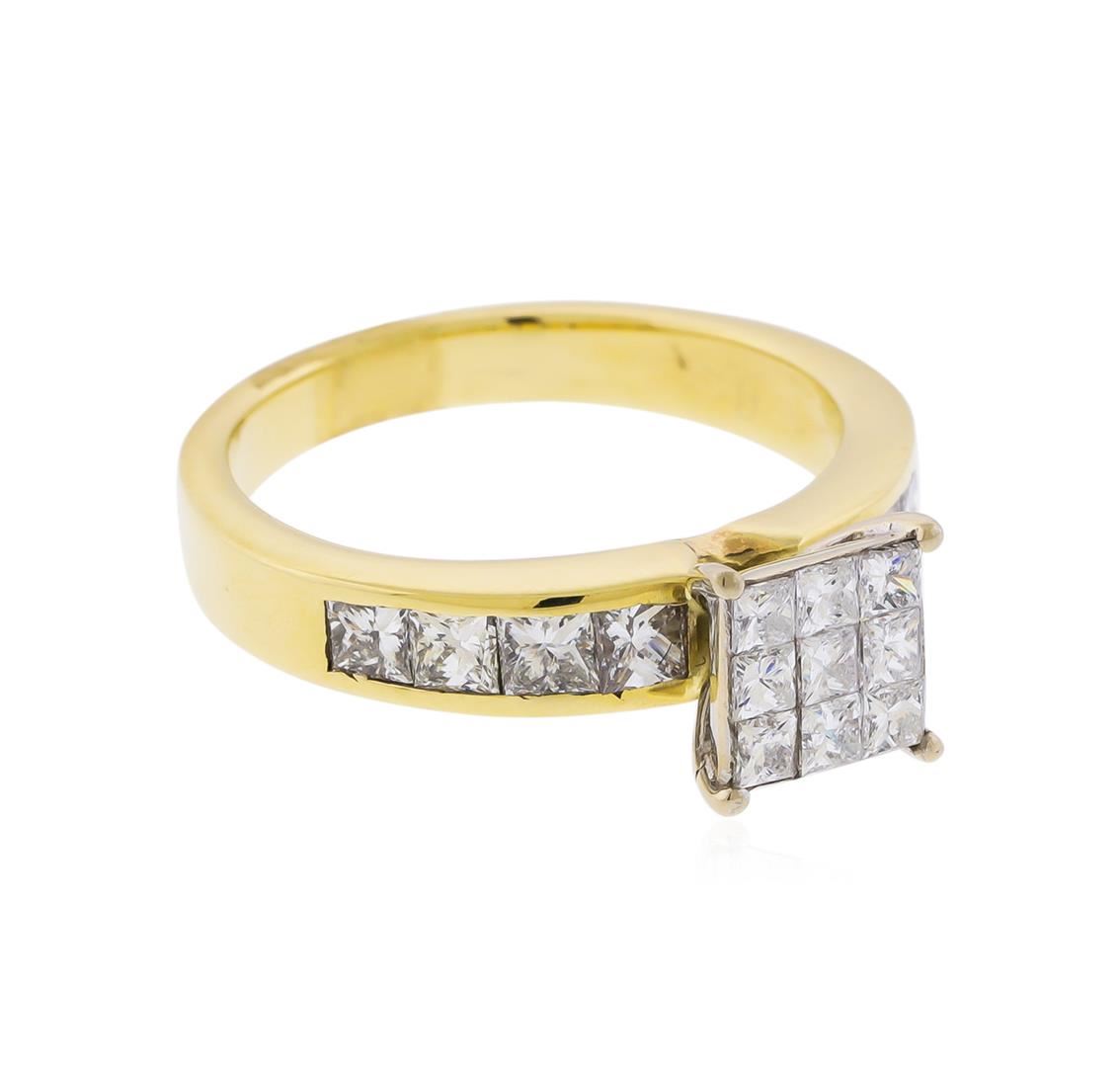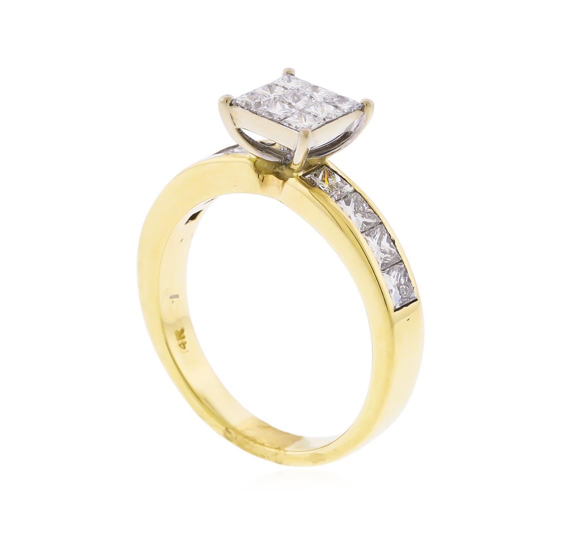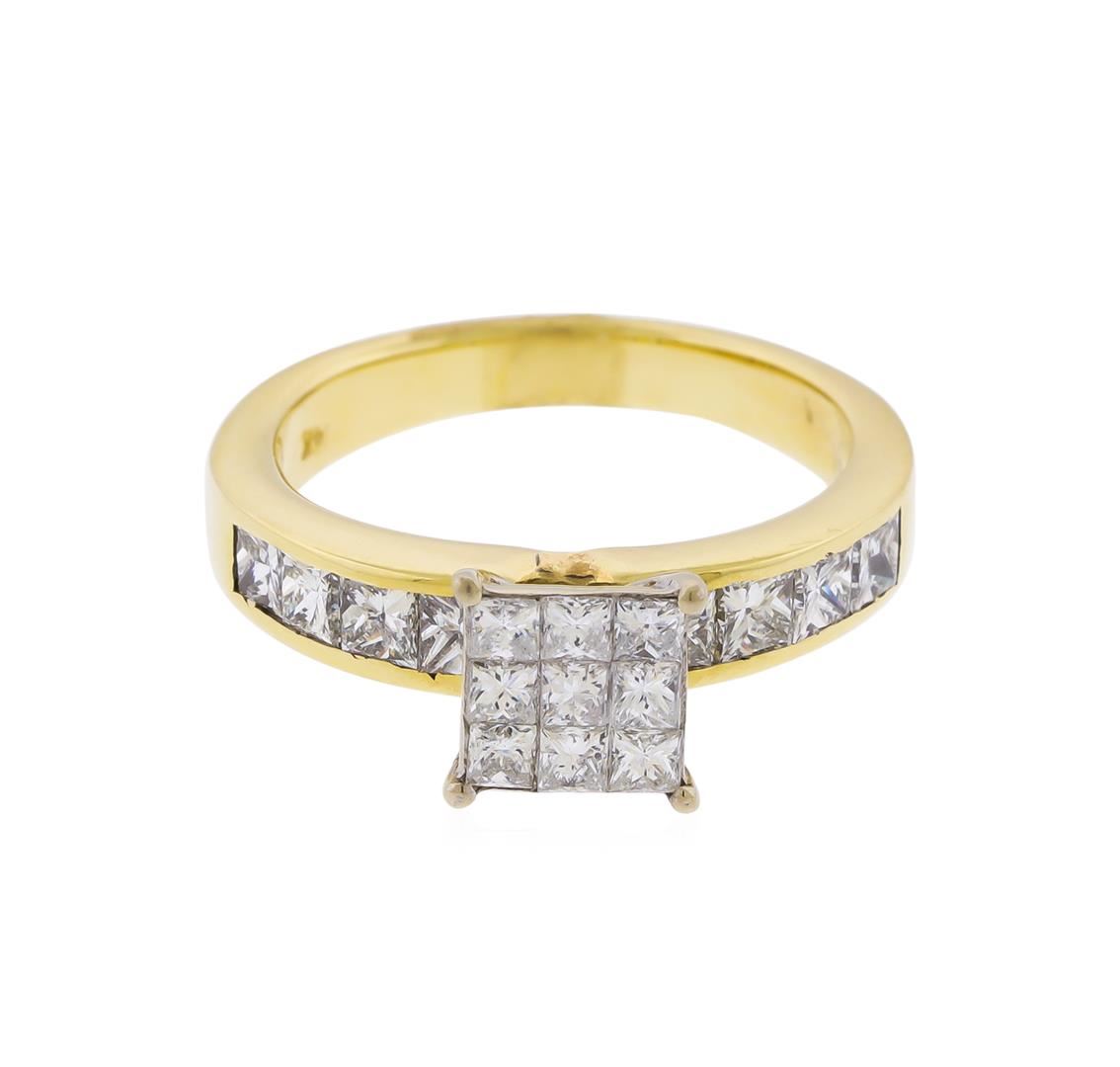 14K Yellow Gold 1.00ctw Princess Cut Diamond Ring. This ring contains approximately 1.00ctw of Princess Cut Diamonds and has a total ring weight of 4.9 grams.