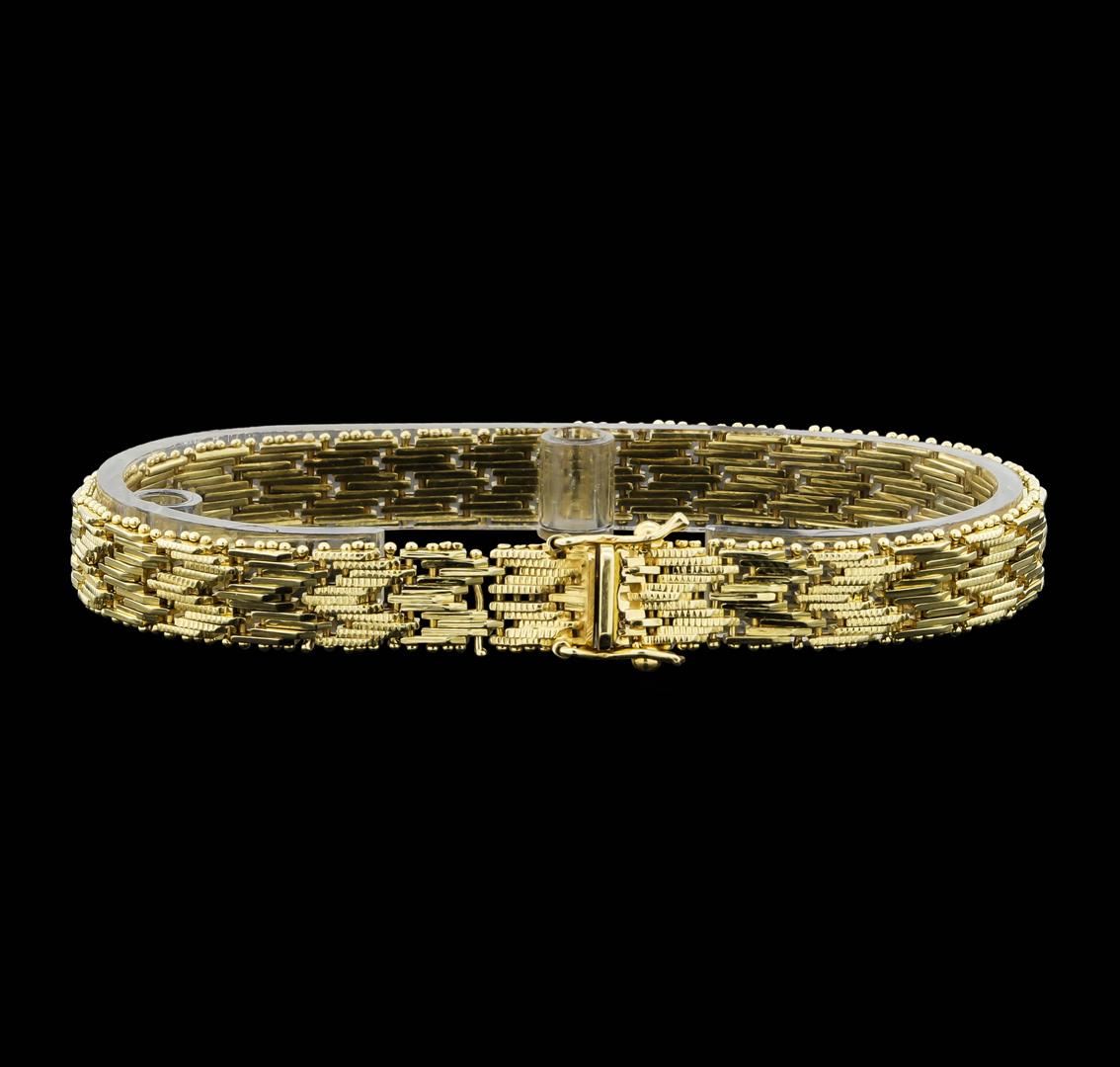 One 14K Yellow Gold Mesh Design Fashion Bracelet weighing approximately 27.8 grams. The bracelet has a length of 7.75 inches.